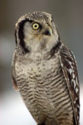 Najszybsza sowa świata. Ptak niewielkich rozmiarow, ubarwieniem przypomina jastrzębia gołebiarza. Poluje na ptaki wielkości wróbla. Zamieszkuje północne zakątki europy i azji.